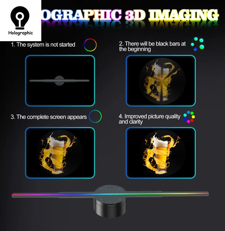 - النوع: مروحة عرض ثلاثية الأبعاد بحجم 45 CM (3D Hologram Fan) مزودة بتقنية الإضاءة الإعلانية المتطورة.